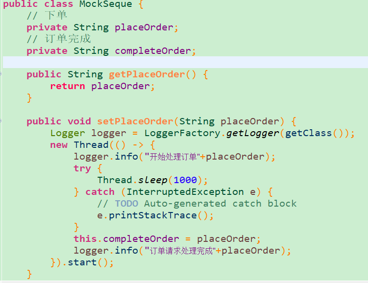 logger.info("订单处理完成" + mockSeque.getCompleteOrder());