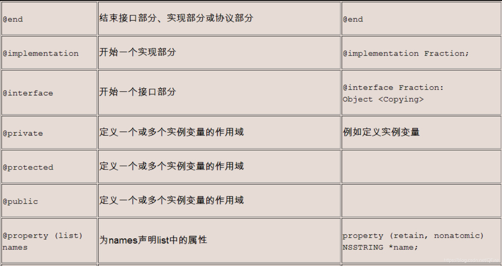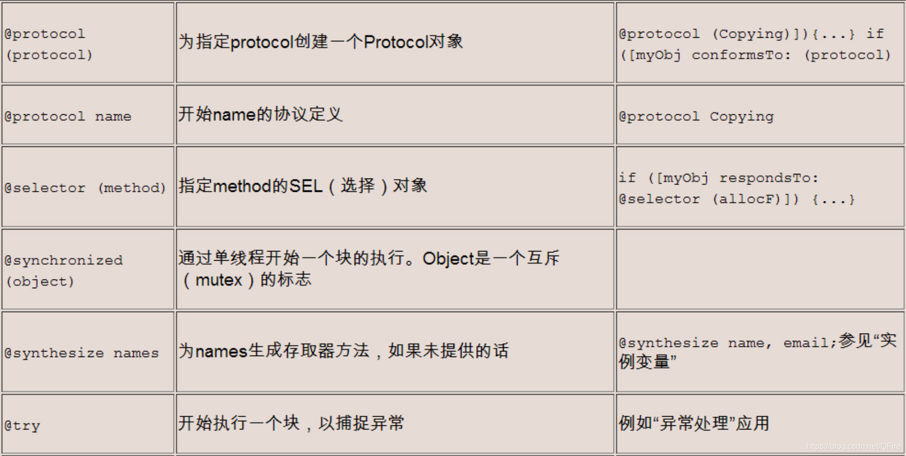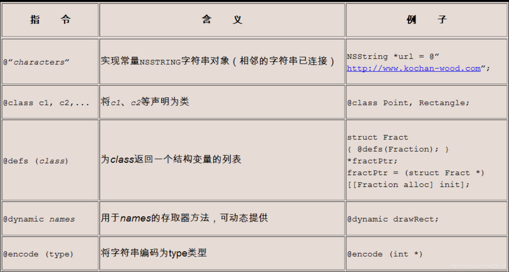 在Objective-C语言中,编译器指令以 @ 符号开始,这个符号经常用在使用类和对象的情况