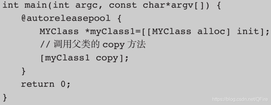 调用父类的方法:子类可以直接调用父类的方法。如下所示:MYClass继承自NSObject,因此MYClass的对象myClass可以直接调用NSObject的copy方法。