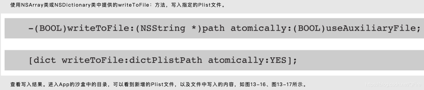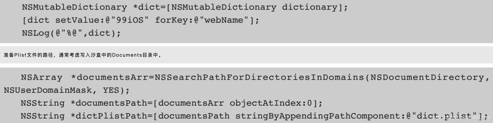 Plist文件的操作也属于文件操作的范畴,通常可以使用writeToFile:方法,把一个字典对象或数组对象写入一个指定的Plist文件中进行保存。