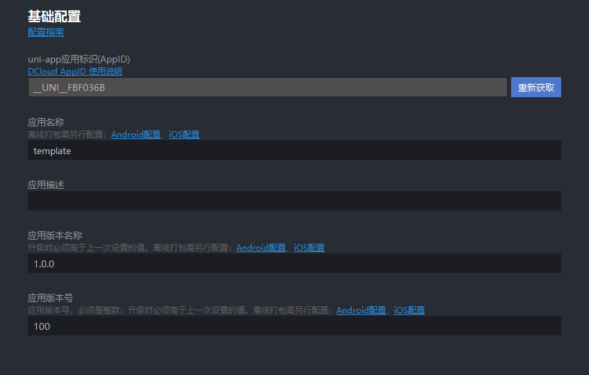 可以简单配置一下应用名称,应用版本号等,也可以不用配置。