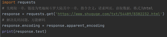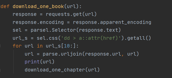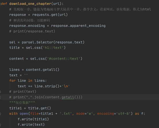 2.爬取整本小说,多章节,首先将上述代码封装,以便后续调用,将其封装为函数对象:download_one_chapter,删除代码中部分print。