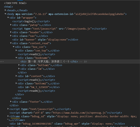 若将小说内容放在同一文件中,将下述代码进行修改: