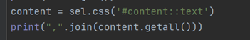得到无标签文本内容,下面我们需要爬取小说内容。(content为id选择器)