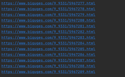 此时为逐章下载,我们要实现自动下载整本小说全部章节,首先我们要获取所有章节的网址。