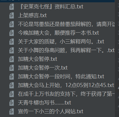 整本小说文本内容则全部保存在同一文档中