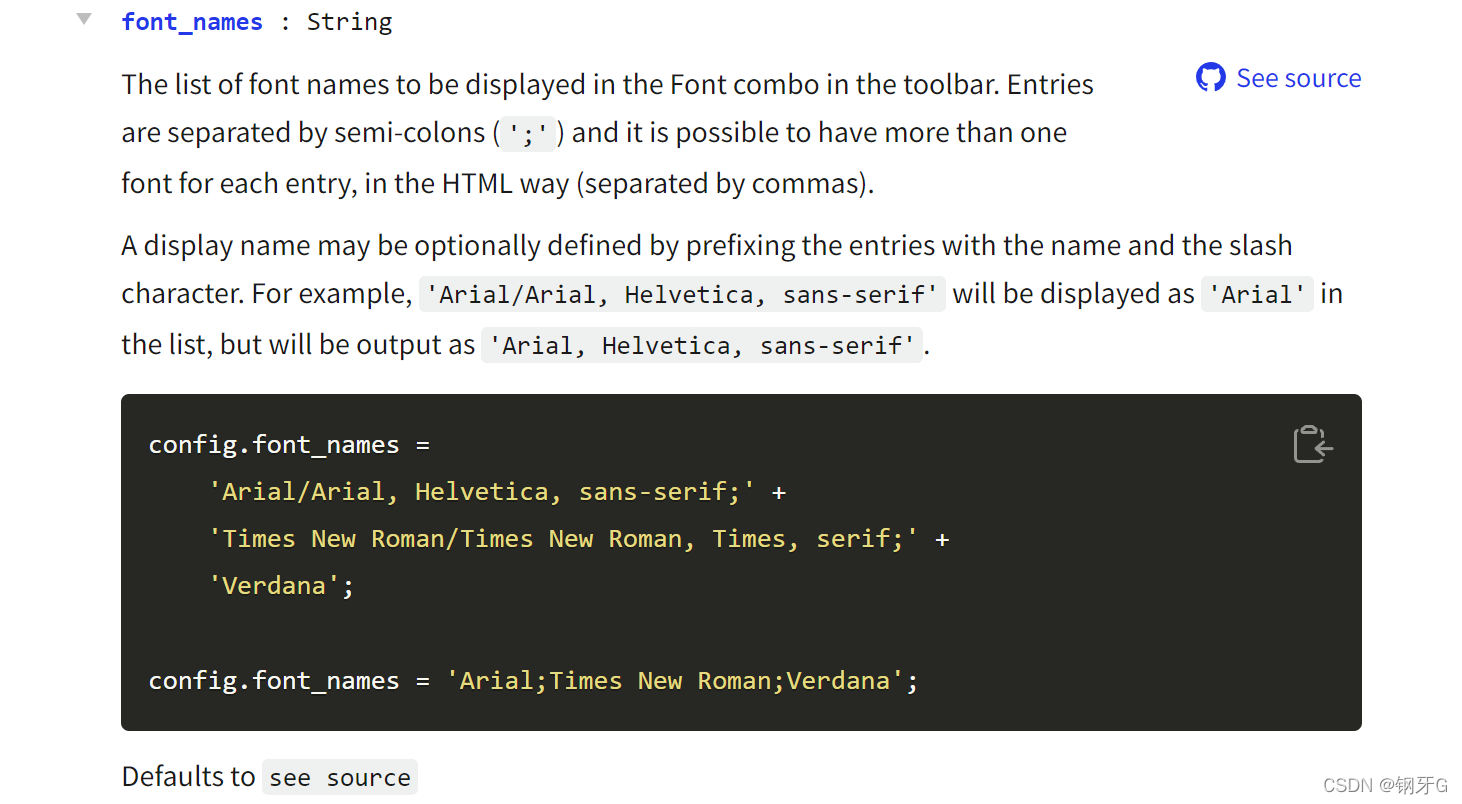 例如:'Arial/Arial, Helvetica, sans-serif',字体列表中只会显示'Arial',但输出的字体为 'Arial, Helvetica, sans-serif'。