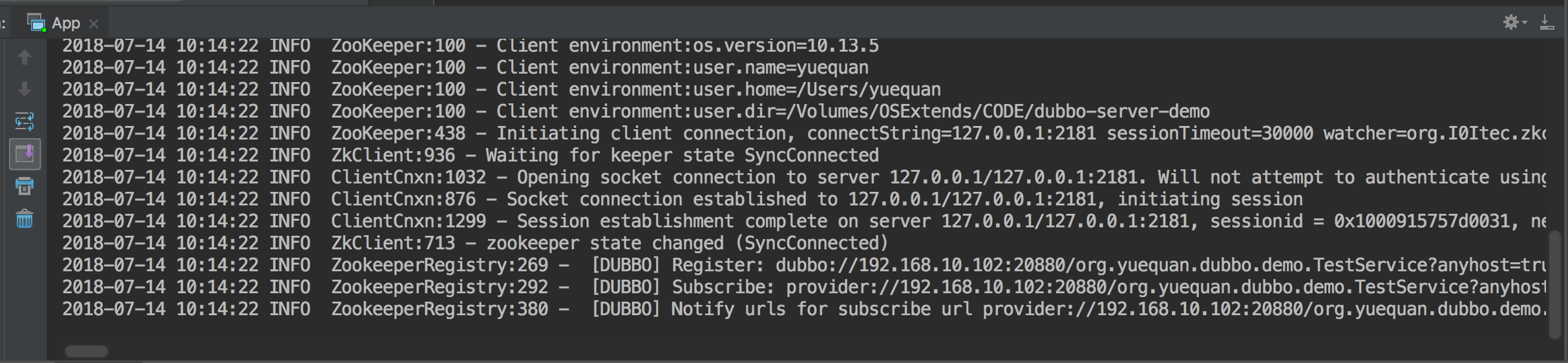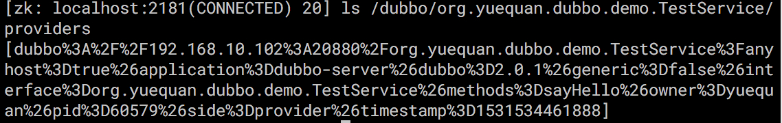 其中dubbo.registry.address=zookeeper://127.0.0.1:2181设置注册中心地址,这里设置为zk的地址