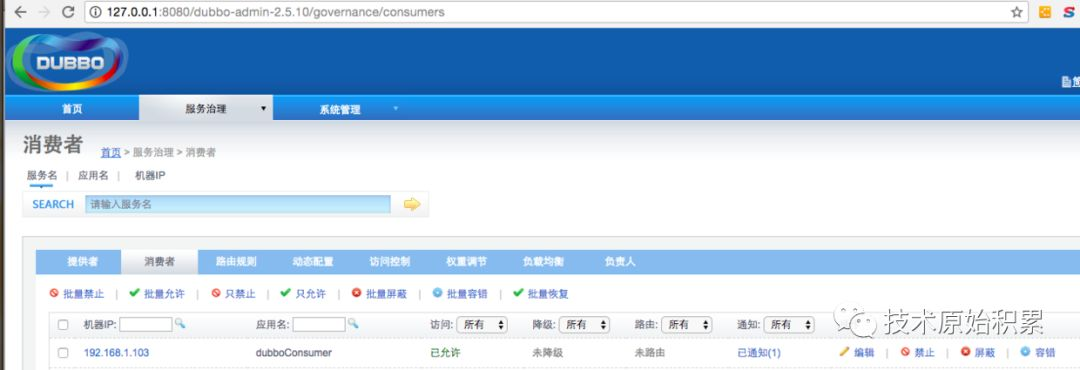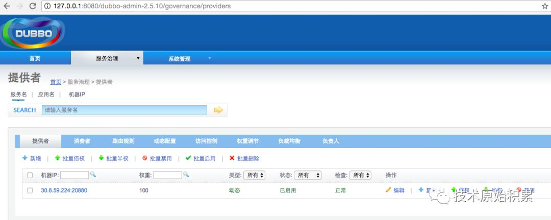 开源的Dubbo的服务管理控制台是阿里巴巴内部裁剪版本,开源部分主要包含:路由规则,动态配置,服务降级,访问控制,权重调整,负载均衡,等管理功能。