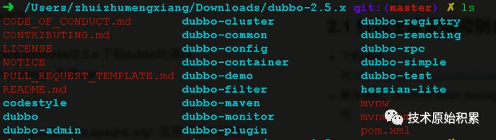 在 https://github.com/alibaba/dubbo/tree/2.5.x 下载dubbo的源码解压源码,进入dubbo-2.5.x 目录,内容如下: