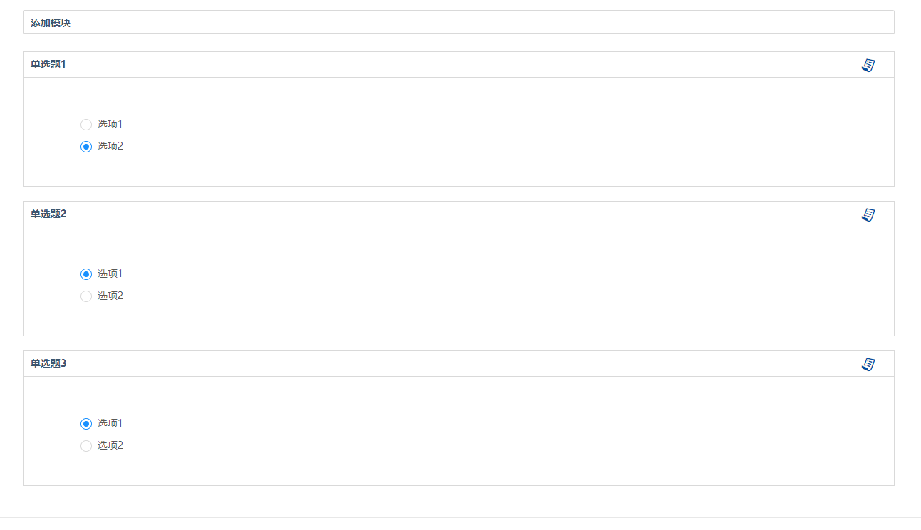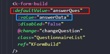 value为问题的渲染,defaultvalue为答案的回显,这里发现defaultvaluedom更新不及时,所以选用的ant-vue的其他表单方法