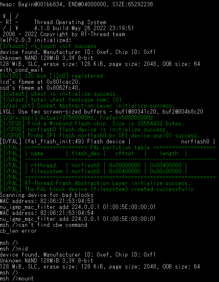 N9H30 FMI NAND controller driver for RT-Thread已實作完成,初步測試ok。