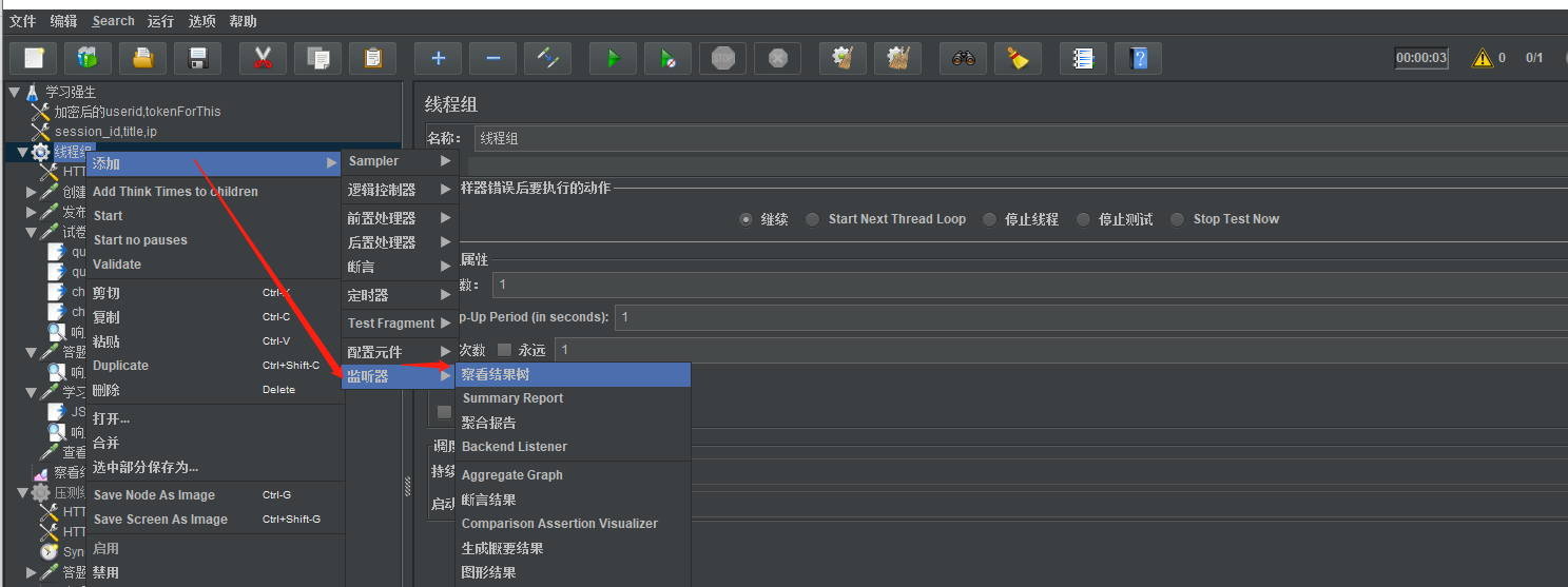 打开jmeter新建线程组,右击》添加》监听器》察看结果树