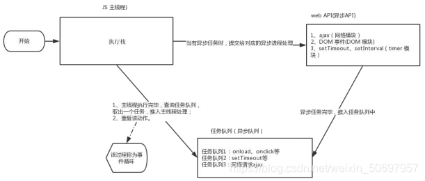 异步任务相关回调函数添加到任务队列中(任务队列也称为消息队列)。