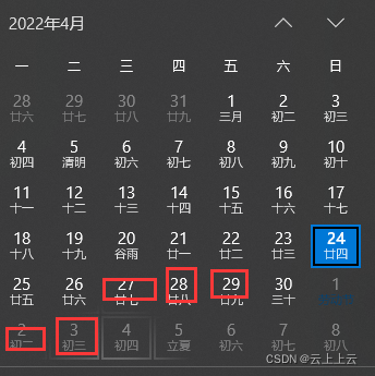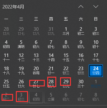 }当前时间为4-24加五天就是4-29