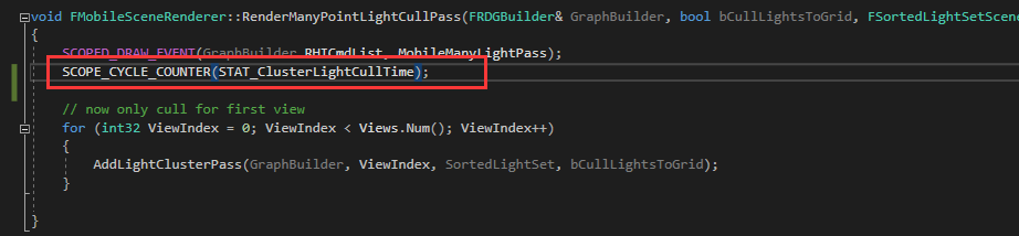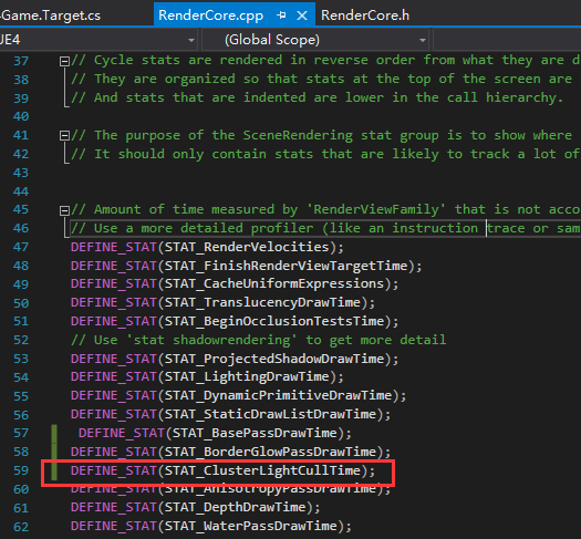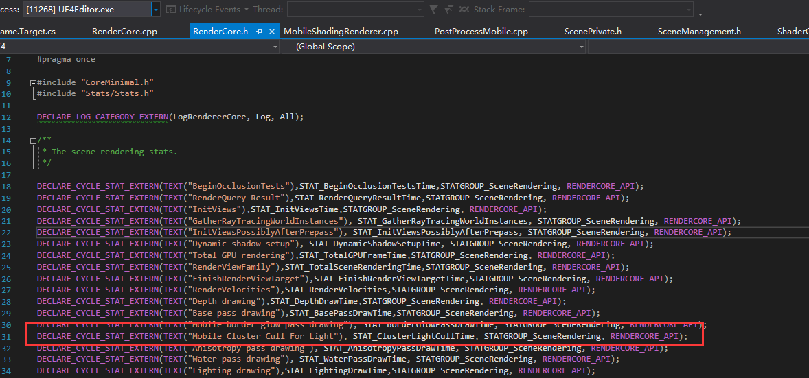 在RenderCore(.h,.cpp)声明定义profile字段,加入到局部函数,可以通过stat scenerendering指令来打印出相应时间