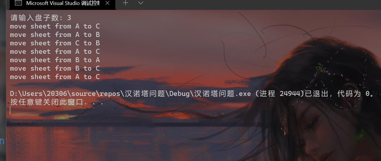 hannuota(1, a, b, c);//将 a中剩下的最大的盘子 移动到c上