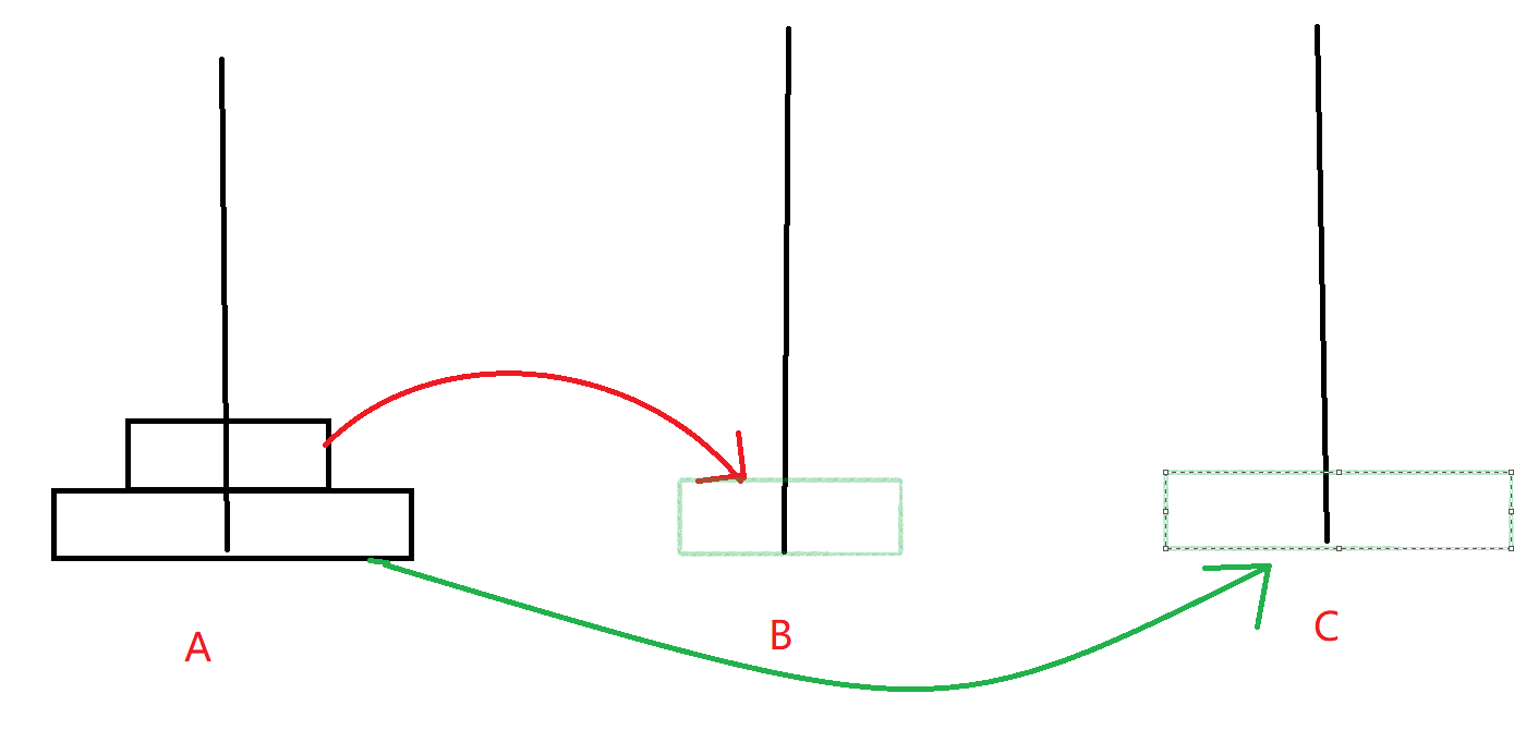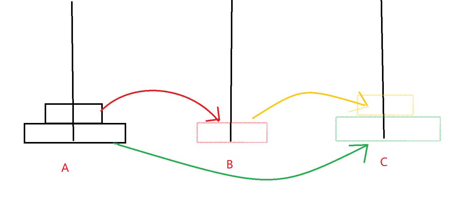 //首先移动到b上 那么这里就需要多次递归实现 因此abc的实际作用也会发生改变