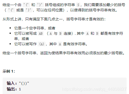 - 设置一个变量len保存string s的长度,res记录结果(这里可以解释为当先出现')'时,需要一个变量记录需要添加的‘(’的数量。)