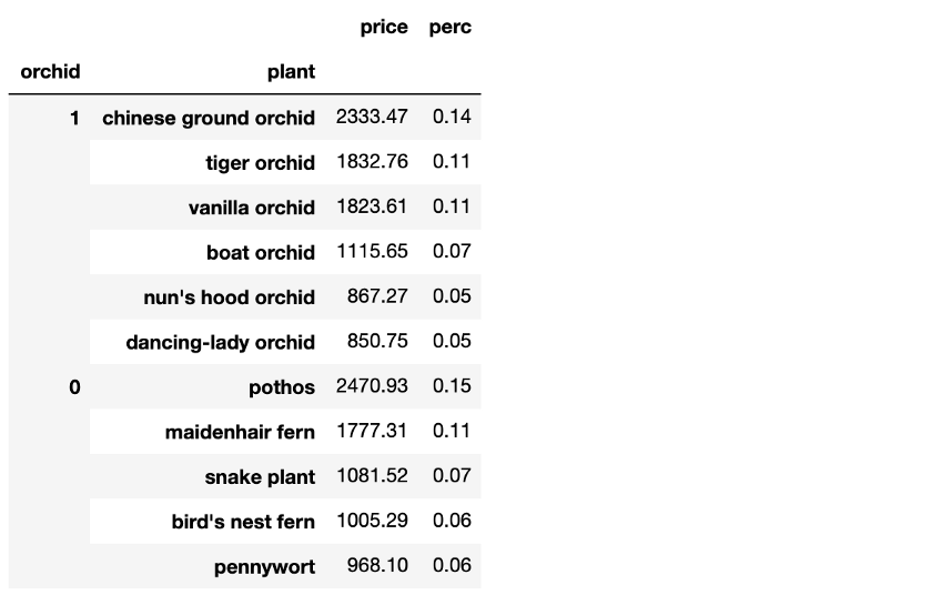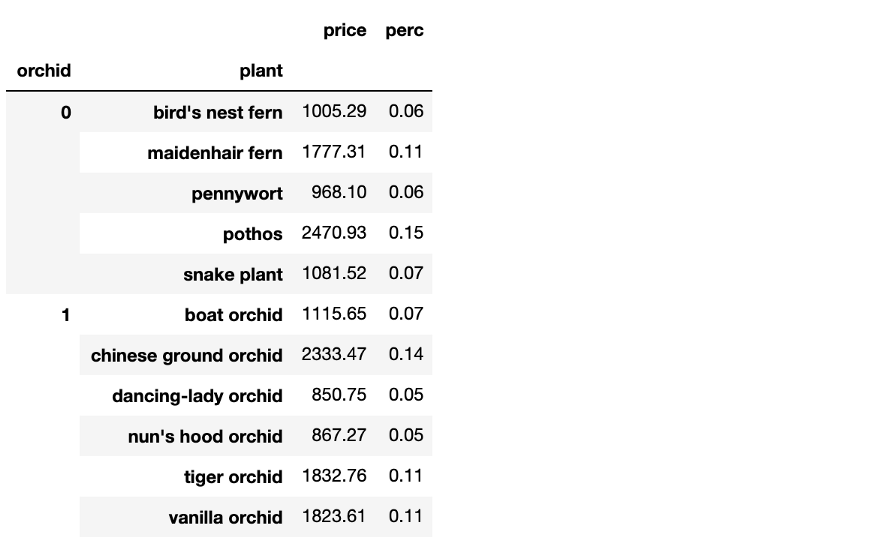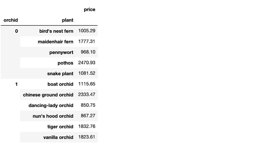 piv0 = data[['orchid','plant','price']].groupby(by=['orchid','plant']).sum()