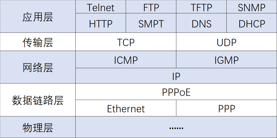 - TCP/IP协议栈定义了一系列的标准协议