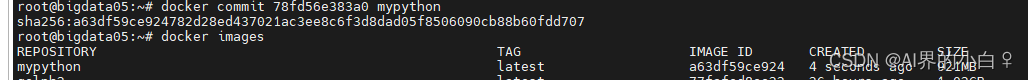 <7>出来的镜像可能没有名字,需要进一步进行操作,将该镜像生成一个容器:docker run -itd —name=容器名 -v /root:/home(需要放在哪里) 镜像ID