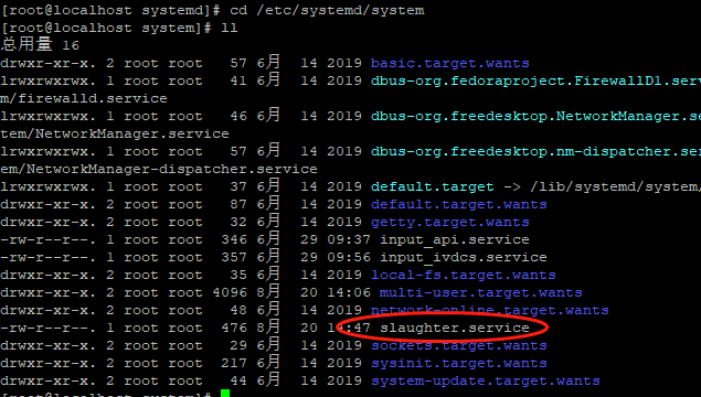 5.编辑完成之后 chmod 776 slaughter.servcie 添加可执行权限