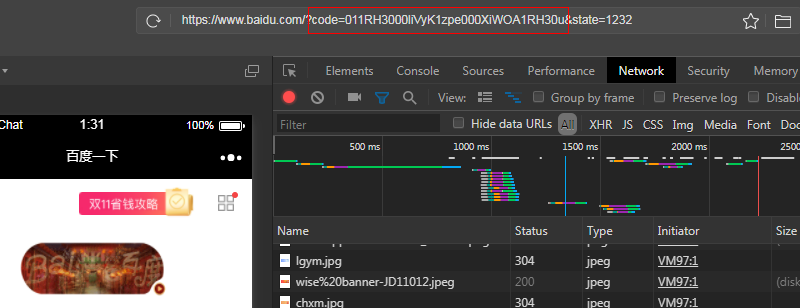 注意:需要使用微信客户端打开或微信开发者工具访问该链接,地址栏访问授权链接获取授权码code。也可将授权链接做出二维码,这就是微信扫码登录咯,手机扫码后手机右上脚调出浏览器工具栏->'复制链接'即可查看到授权码。