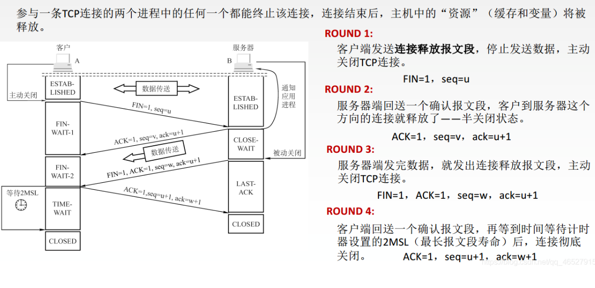 首先,客户端发送一个连接释放报文段,并且停止发送数据,主动关闭这个TCP连接。