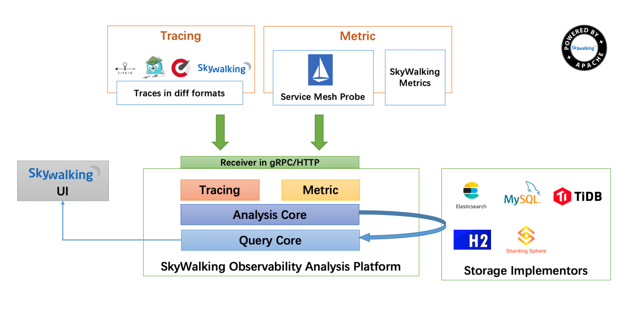 skywalking 6.0架构图如下: