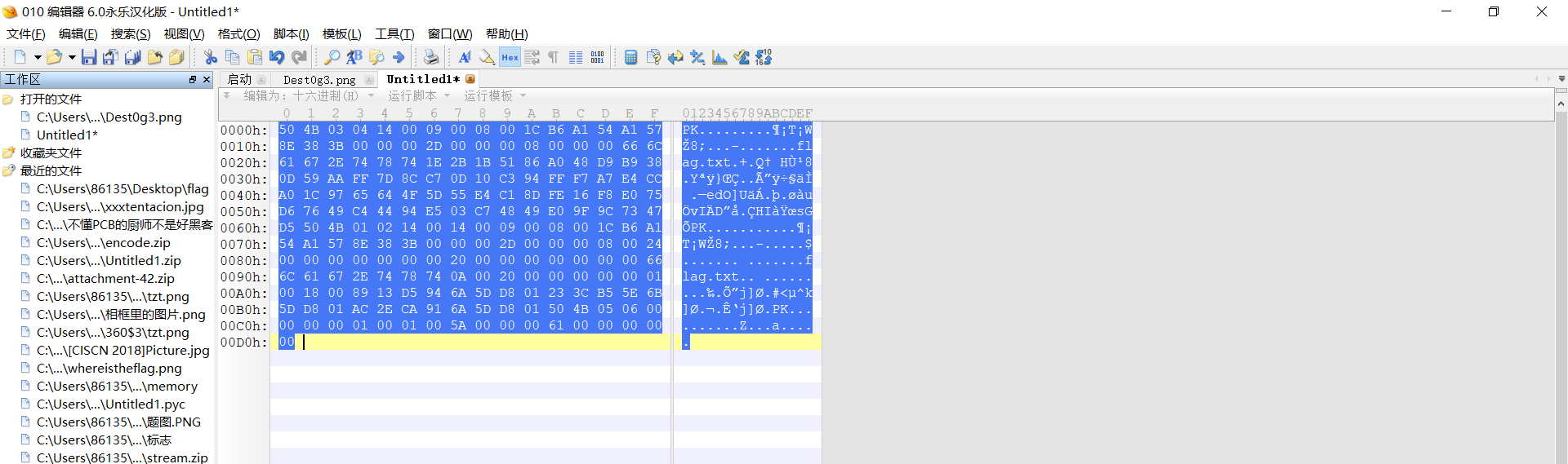 发现了一个zip的压缩包,猜测里面有个压缩包,用binwalk果然发现zip但分离不出来