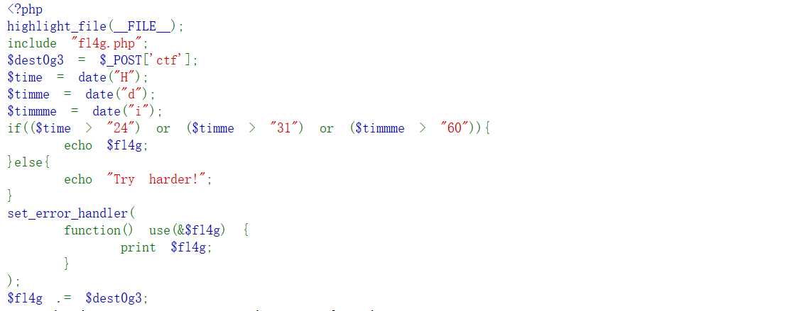 就得触发set_error_handler函数,这个函数是自定义报错修复函数,我们可以传入一个数组让他报错就可以print flag