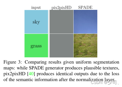 InstanceNorm应用于输出之后,无论输入的语义标签是什么,标准化激活都将变为全零。SPADE Generator中的分割掩模通过空间自适应调制进行馈送而不进行归一化,仅前一层的激活被标准化。