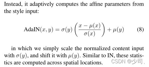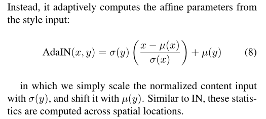 注意这里的下标,ɥ和ɓ是和通道C相关的。这里gama和beta是和C,(y,x)相关的,具有位置信息,加上通道C,这也就是空间Spatially-Adaptive。注意这里的h是 the activation at the site。