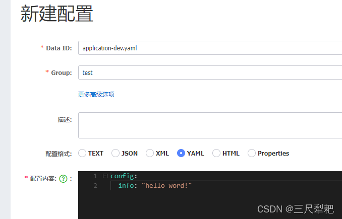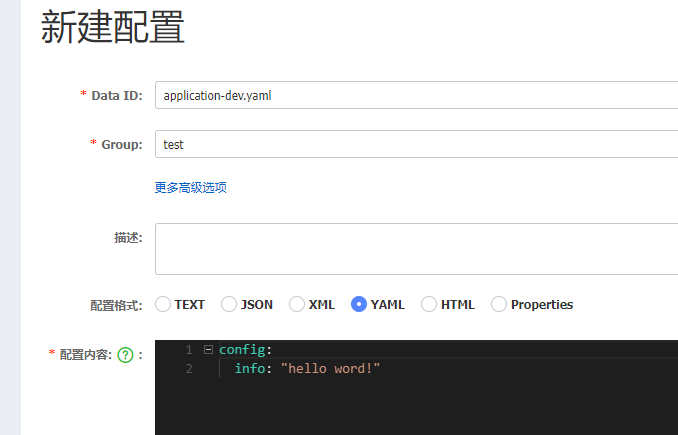 3.4 nacos 新增配置文件,group 填写的必须和配置的group-config 一致