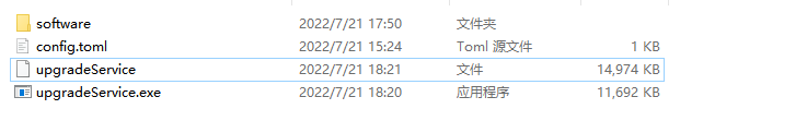 运行upgradeService.exe程序,程序会在downloadPath路径下自动创建software目录。用户需手动创建版本号对应的目录,将安装包放在downloadPath/saftware/版本号路径下,客户端运行升级软件,即可下载对应系统的软件包,完成升级。