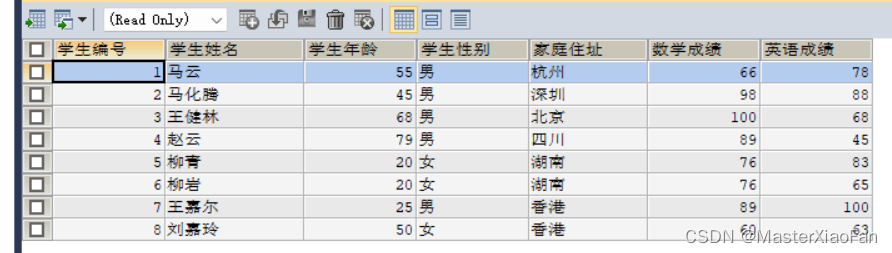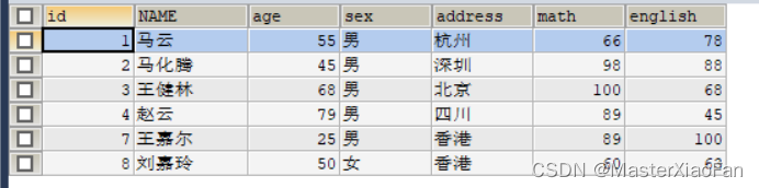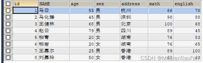 SELECT * FROM student; 表中数据结果显示如下: