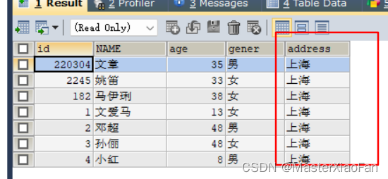 UPDATE student SET address = '上海';结果显示如下: