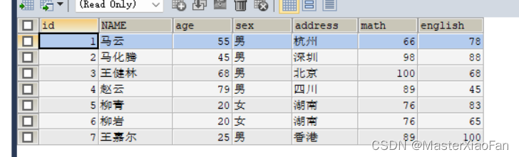 SELECT*FROM student02; -- 操作二结果 操作一结果显示如下: