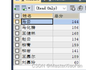 -- 需求查询全部学生的总分;