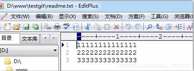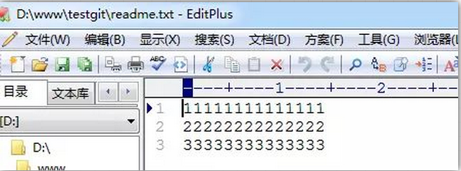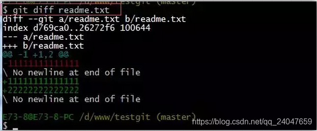 如上可以看到,readme.txt文件内容从一行11111111改成 二行 添加了一行22222222内容。
