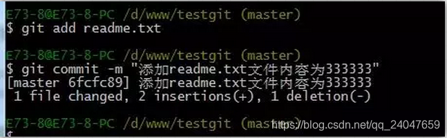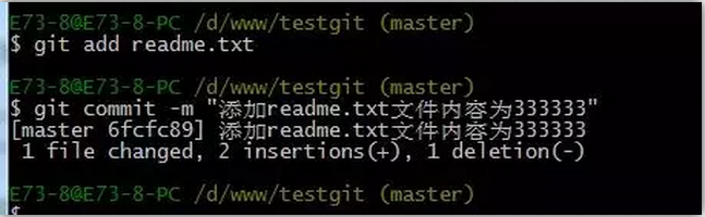 第一步:使用命令 git add readme.txt添加到暂存区里面去。如下: