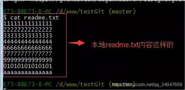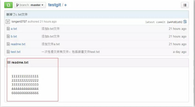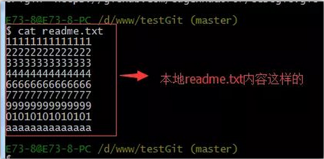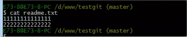 首先我们先来查看下readme.txt内容,接着添加内容77777777,如下: