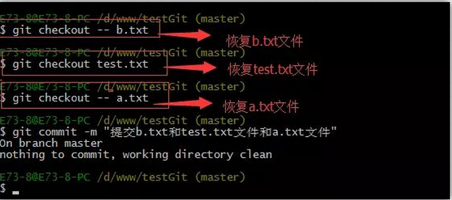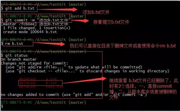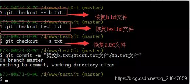 可以使用如下命令 git checkout -- b.txt,如下所示: