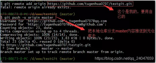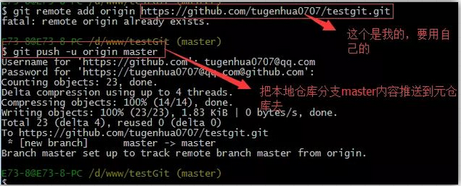 git remote add origin https://github.com/tugenhua0707/testgit.git