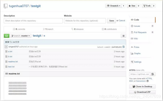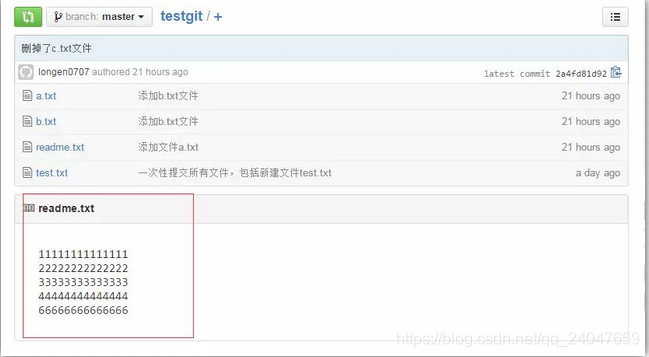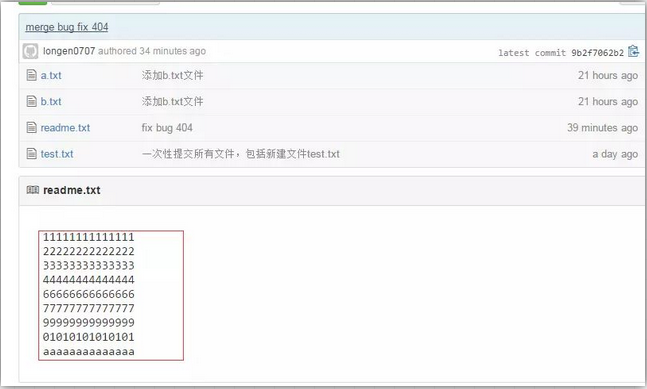 我们可以看到如上,推送成功,我们可以继续来截图github上的readme.txt内容 如下: