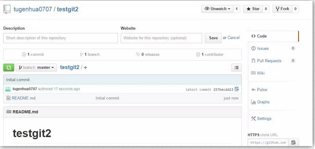 首先,登录github,创建一个新的仓库,名字叫testgit2.如下: