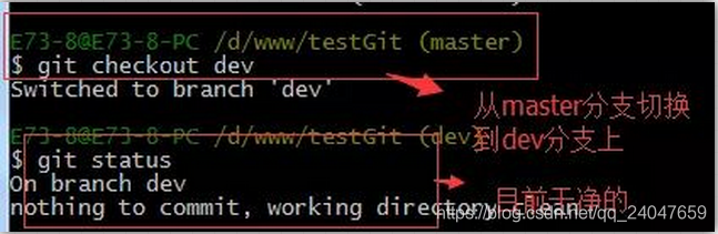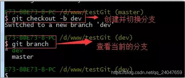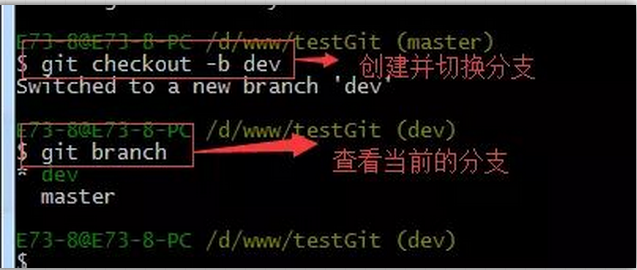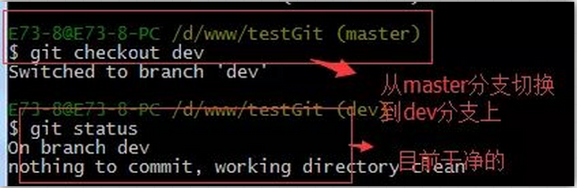首先,我们来创建dev分支,然后切换到dev分支上。如下操作: