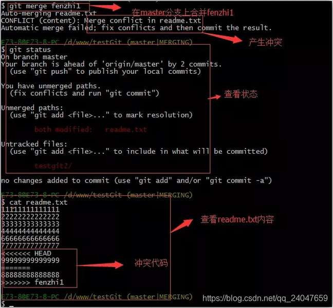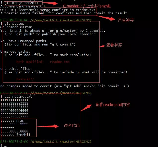 现在我们需要在master分支上来合并fenzhi1,如下操作: